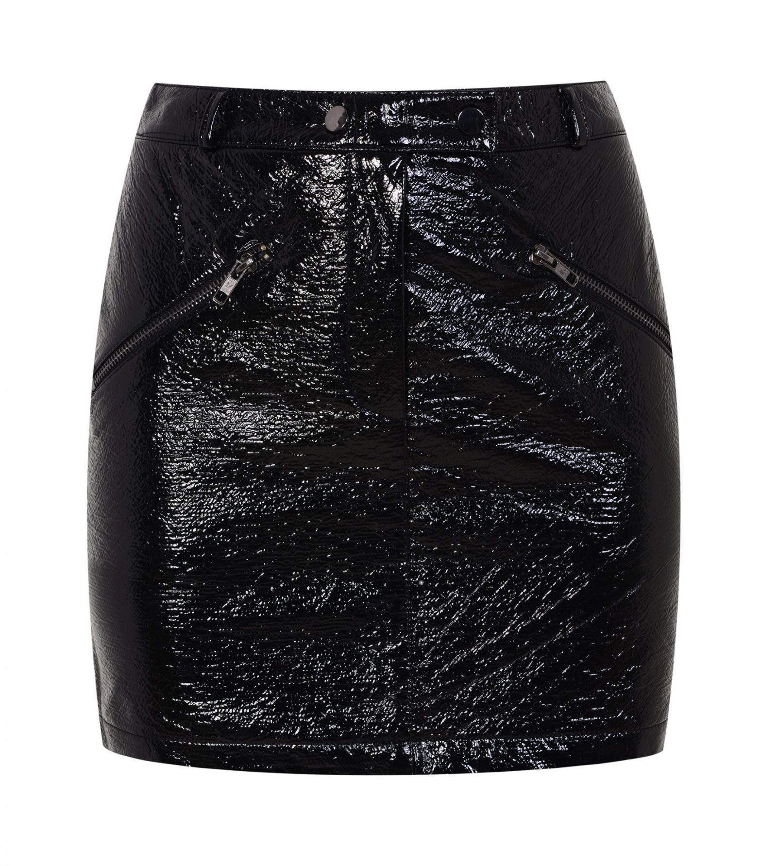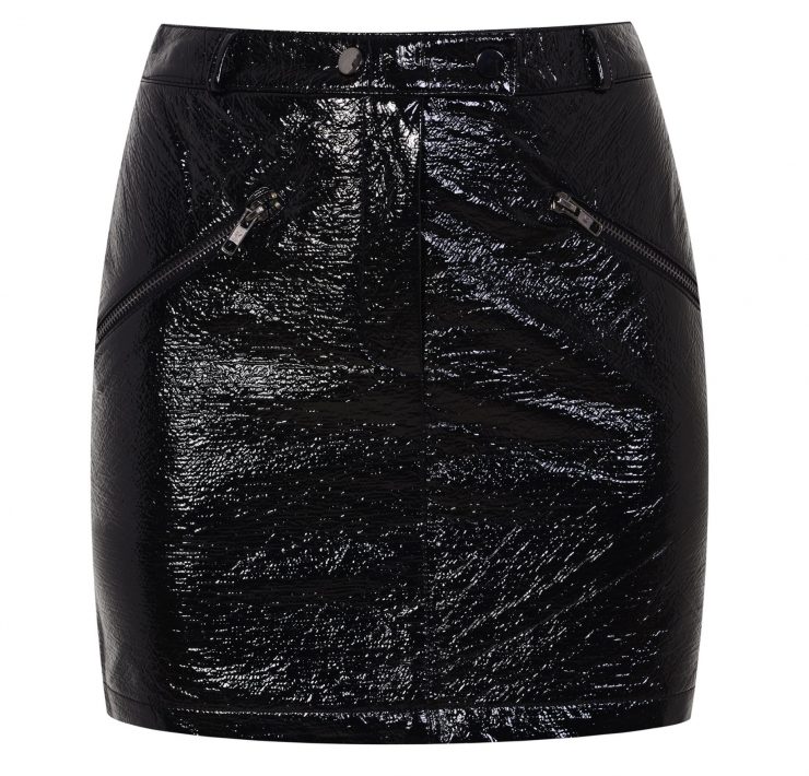 Topshop “Vinyl Zip Pocket Mini Skirt”, $85