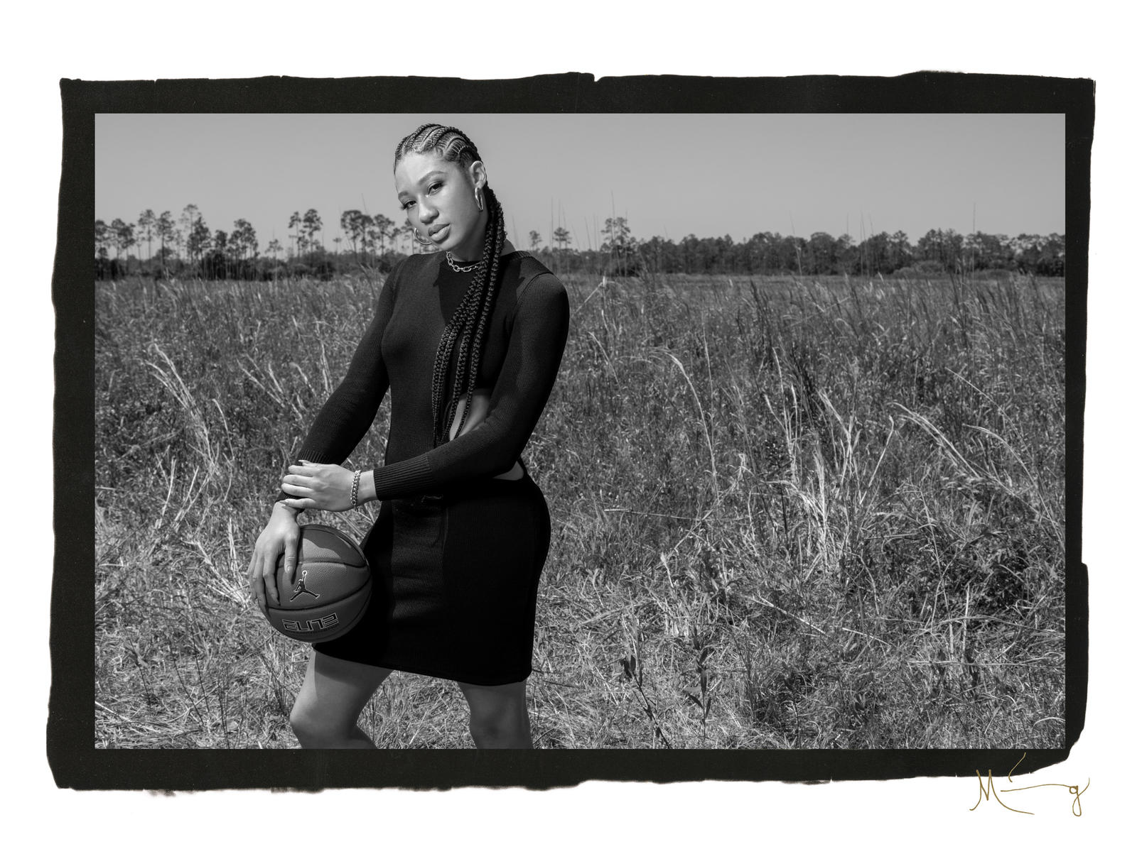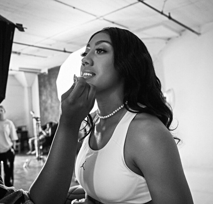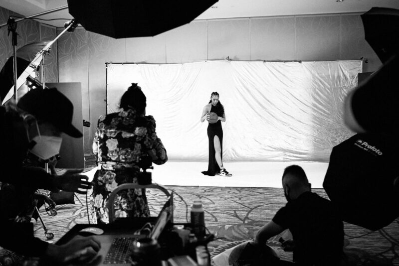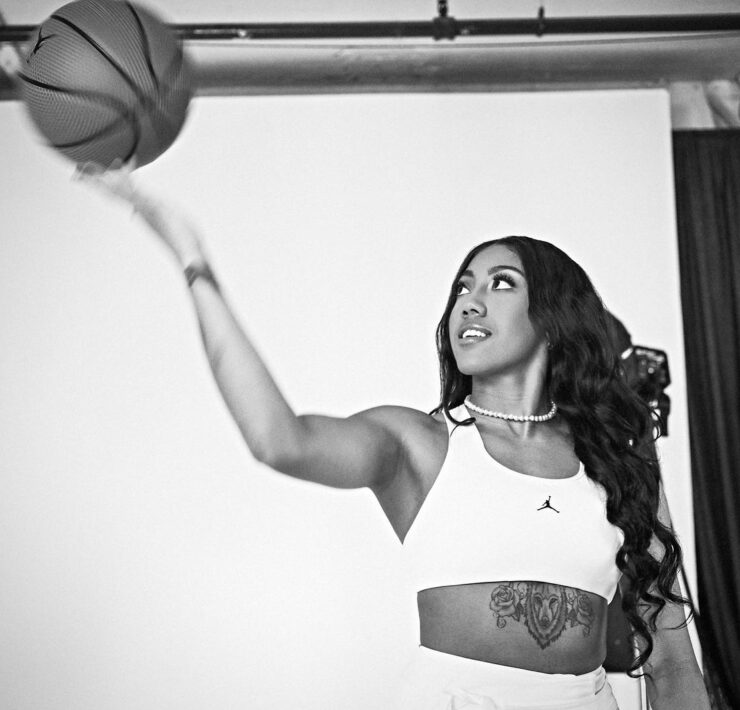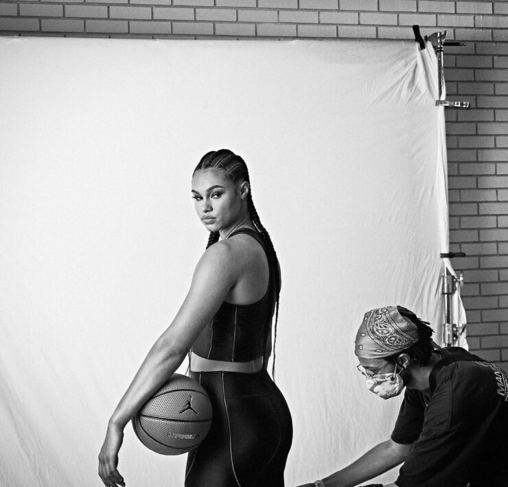 The simultaneous elegance and strength of the images and their subjects suggests a turning point for women in society and in sports — specifically signaling a bright future for the women’s game and the next generation. “Representation really matters at this point in time,” says Seattle Storm star Jordin Canada. “To have eleven black women be a part of this brand allows the younger generation and younger women to see that they can be like us — they can have that opportunity. I didn’t see that growing up.”