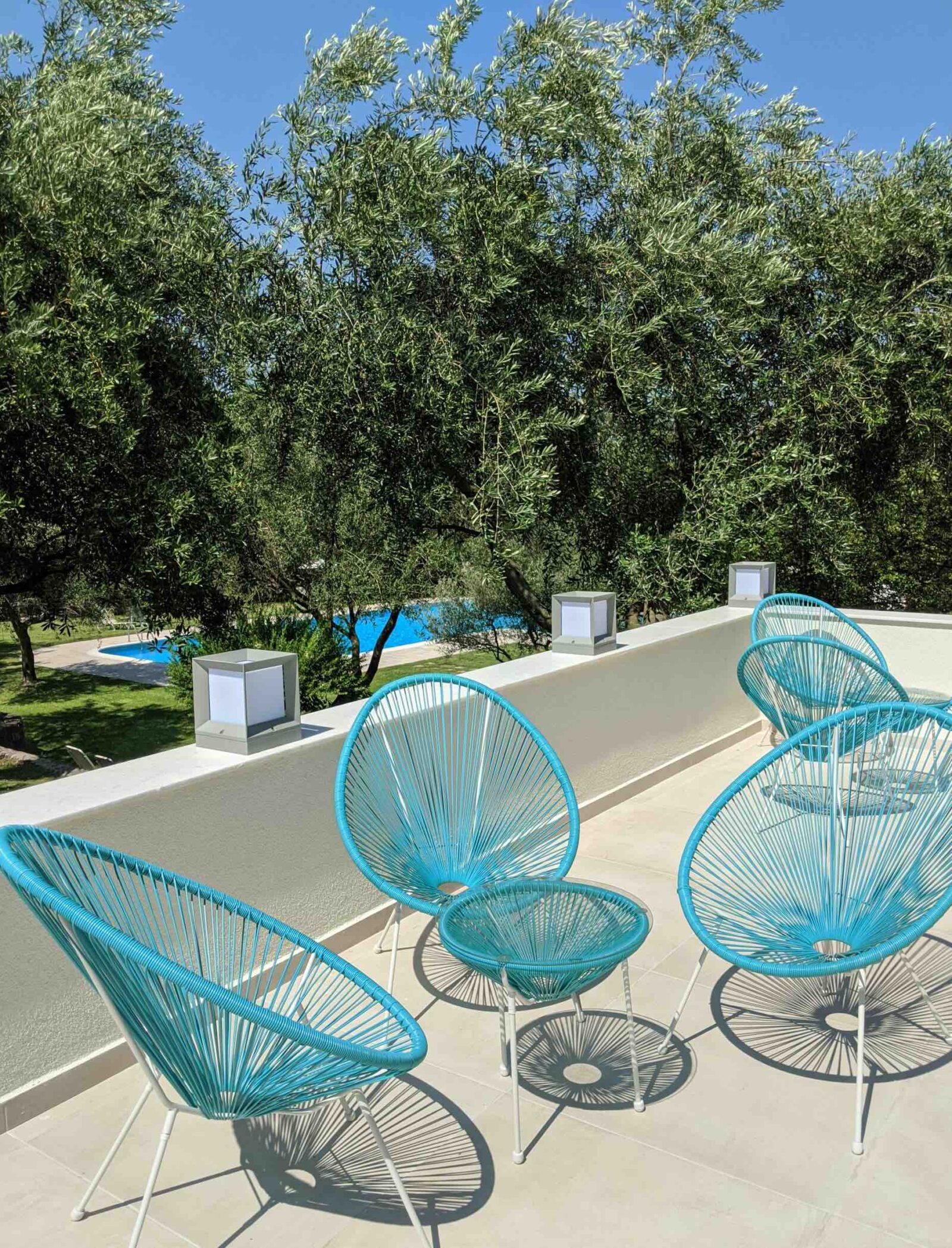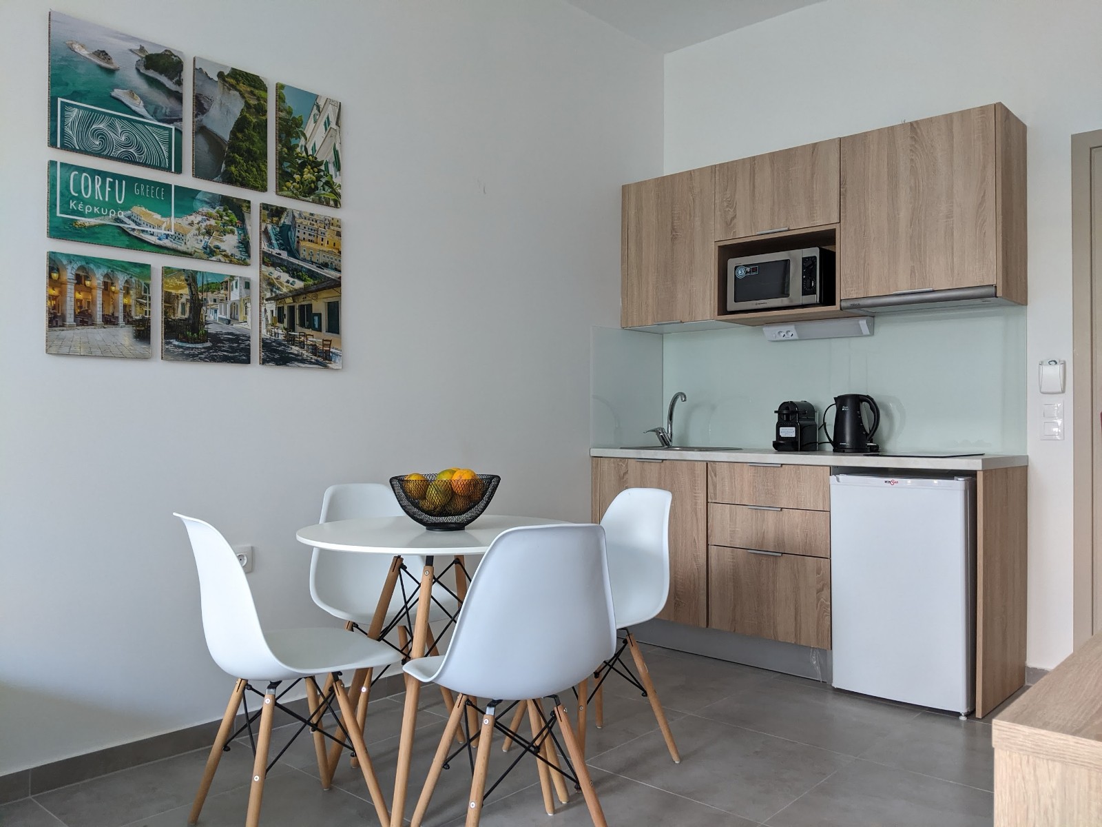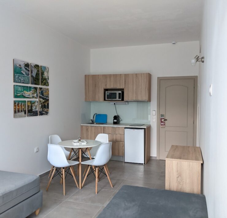 Accommodation-wise, the stylish studio apartments offer ample living space, a modern bathroom with a walk-in shower, a fully equipped kitchenette and dining area, and of course, a balcony that either overlooks the gardens and the pool or the hills.