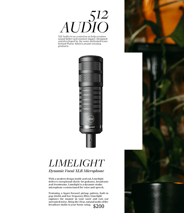 With a modern design inside and out, Limelight delivers exceptional clarity for podcasts, broadcasts and livestreams. Limelight is a dynamic studio microphone custom-tuned for voice and speech. Featuring a hyper-focused pickup pattern, built-in pop shield, and low frequency filter, Limelight captures the nuance in your voice and cuts out unwanted noise. Bring the clear, natural audio of the broadcast studio to your home setup.