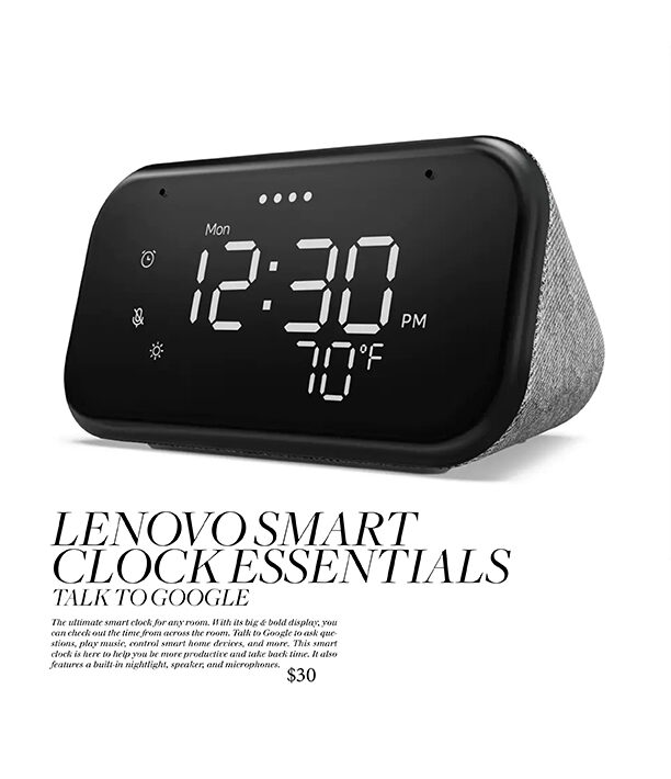 Talk to Google The ultimate smart clock for any room. With its big & bold display, you can check out the time from across the room. Talk to Google to ask questions, play music, control smart home devices, and more. This smart clock is here to help you be more productive and take back time. It also features a built-in nightlight, speaker, and microphones.