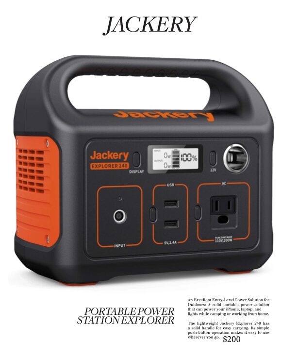 An Excellent Entry-Level Power Solution for Outdoors: A solid portable power solution that can power your iPhone, laptop, and lights while camping or working from home. The lightweight Jackery Explorer 240 has a solid handle for easy carrying. Its simple push-button operation makes it easy to use wherever you go.