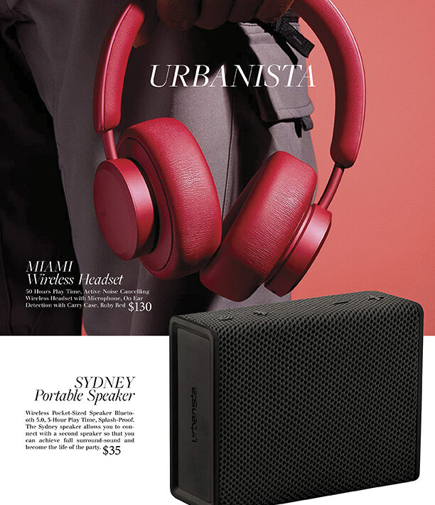 MIAMI Wireless Headset 50 Hours Play Time, Active Noise Cancelling Wireless Headset with Microphone, On Ear Detection with Carry Case, Ruby Rec Sydney Portable Speaker Wireless Pocket-Sized Speaker Blueto- oth 5.0, 5-Hour Play Time, Splash-Proof. The Sydney speaker allows you to con- nect with a second speaker so that you can achieve full surround-sound and become the life of the party