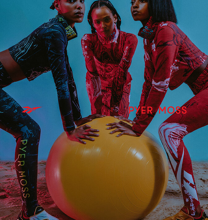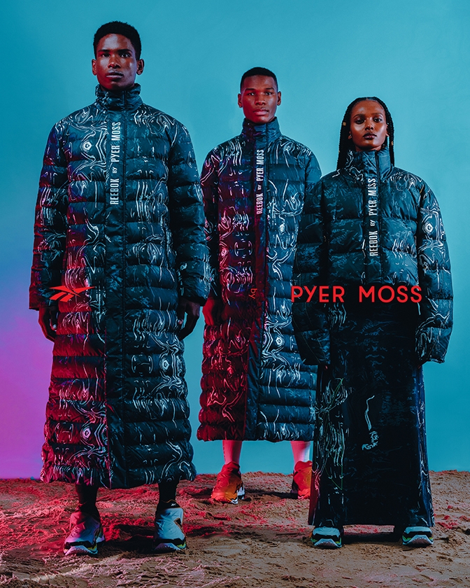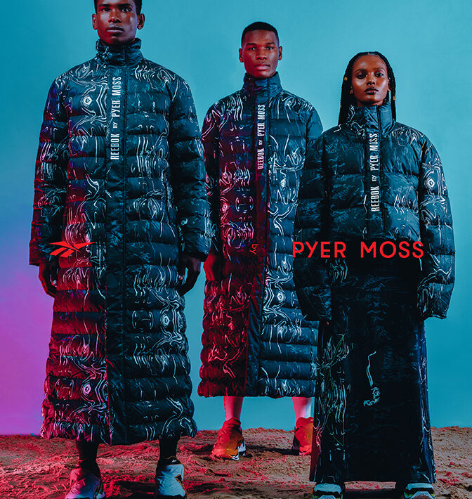 The Reebok by Pyer Moss collection features products that reimagine staples in a meaningful way, each with its own unique story. In addition, the collection merges Pyer Moss’ storytelling and aesthetic with Reebok’s rich history of athletic footwear and apparel.