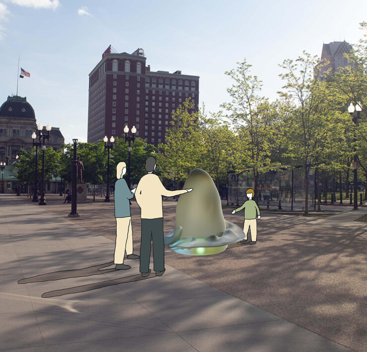 Their research investigated various modes of creative inquiry related to place-based practice, including fieldwork and site visits, interdisciplinary collaboration, and public art. Participants explored the psychological, social, and environmental consequences of technological advancement and failure, speculating about possible near futures where science fiction meets built reality. Projects functioned as imagined propositions, revealing and subverting the unseen technological forces in the world around us. They also uncovered our shifting role as creators, consumers, and unwitting victims of technology.