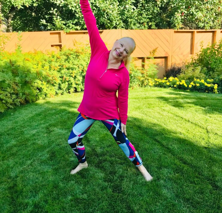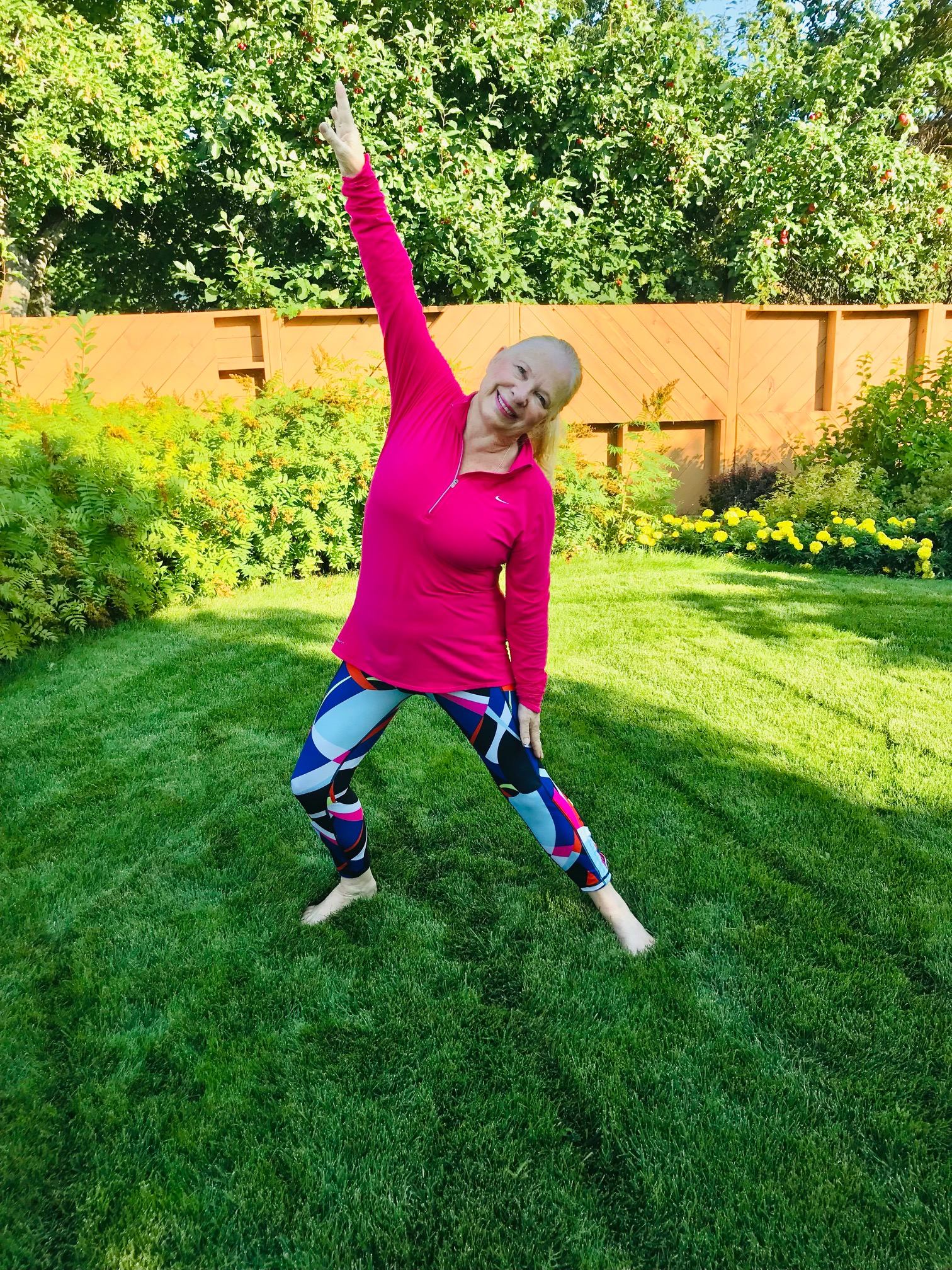 I aim to take fitness classes 6 days a week that include tai chi, yoga, and Pilates at my local Goodlife gym and at home with an online yoga instructor Angie Howden Duke. I also try to eat a healthy diet. I try to follow the ‘walk on by diet’ as I do love sweets meaning if I don’t have them in the house I can’t eat them. I try not to beat myself up when I do have too much or the wrong thing to eat, as tomorrow is another day to start over.