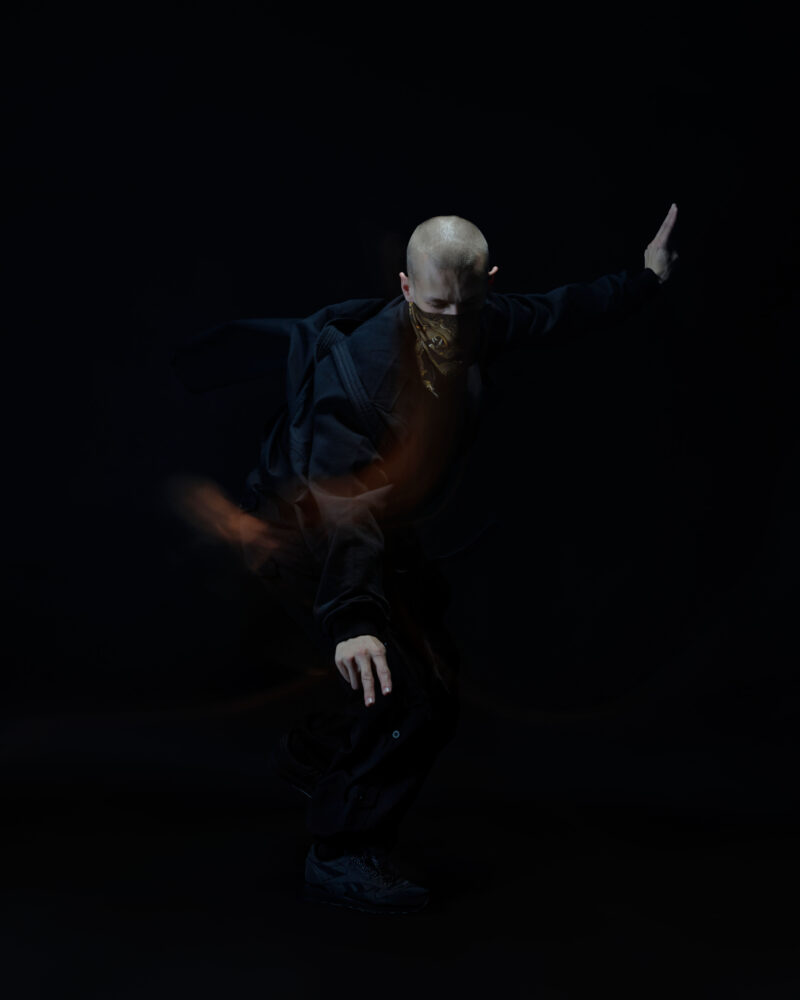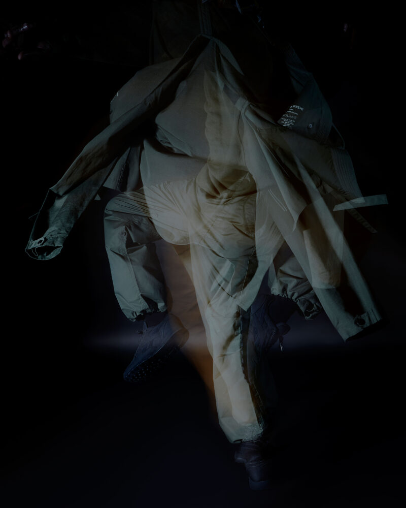 Product imagery captured by London-based photographer Stanley Everest fosters a sense of movement through long-exposure photography of shadow-engulfed subjects contrasted by illuminating light trails. In particular, product imagery pays homage to the works of futurist Umberto Boccioni and the concept of frozen movement and fluidity in sculptures.